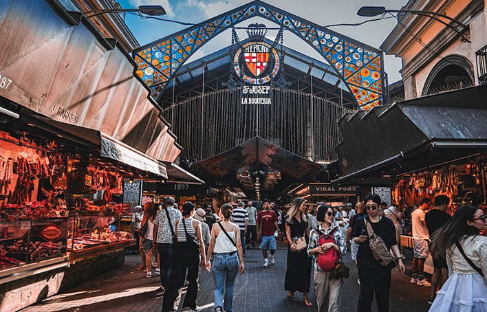 I Barcelona er La Boqueria fortsatt et uunnværlig stopp, til tross for sin popularitet. Like ved La Rambla byr markedet i jern og glass på et sanseangrep: skinker som henger fra kroker, bugnende fruktdisker og glinsende sjømat på is. Mange kommer for en rask juice eller en papirpose med fritert blekksprut, men det lønner seg å bli. Små disker serverer grillede reker, knivskjell og tortilla española laget på bestilling – helst spist skulder ved skulder med lokalbefolkningen på handletur. Kom tidlig på morgenen, før folkemengdene, og opplev markedets mest autentiske tempo.