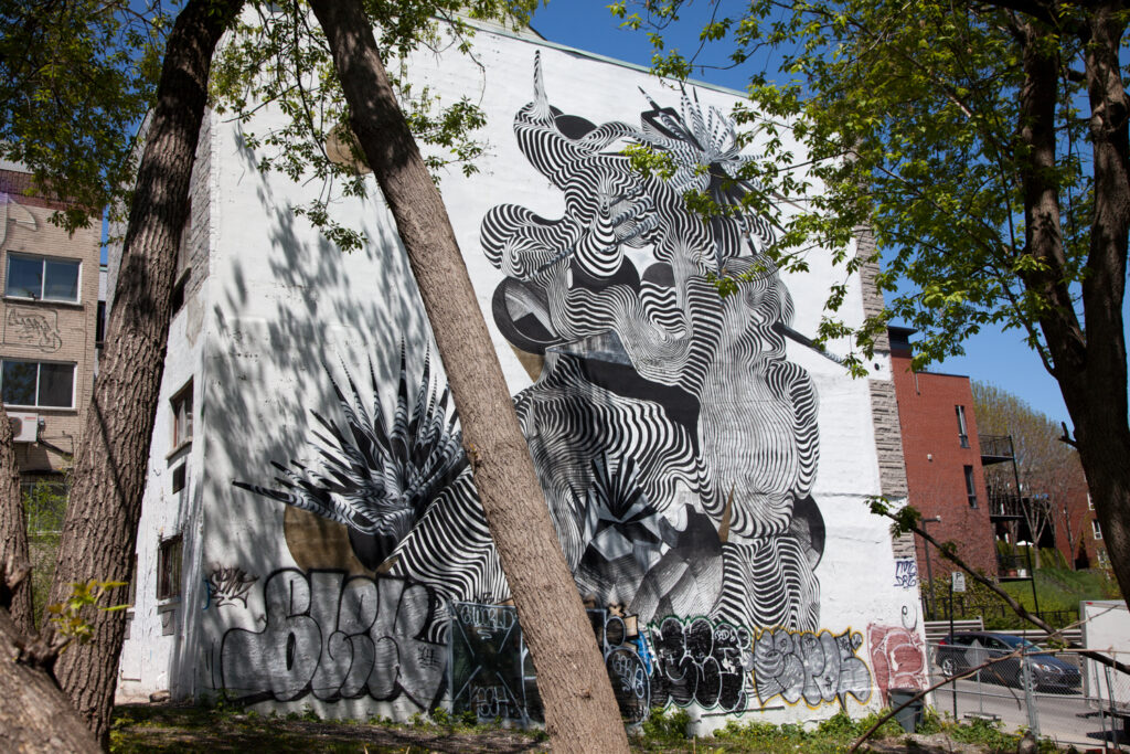 I Plateau-Mont-Royal dukker gatekunsten opp i bakgårder, smug og på vegger mellom klassiske trehus med spiraltrapper. Mange av verkene er signert lokale kunstnere og speiler Montreals identitet: språk, tilhørighet, mangfold og byliv. Det er også her du finner de grønne bakgatene, ruelles vertes, der kunst, planter og nabolagsliv kommer sammen.