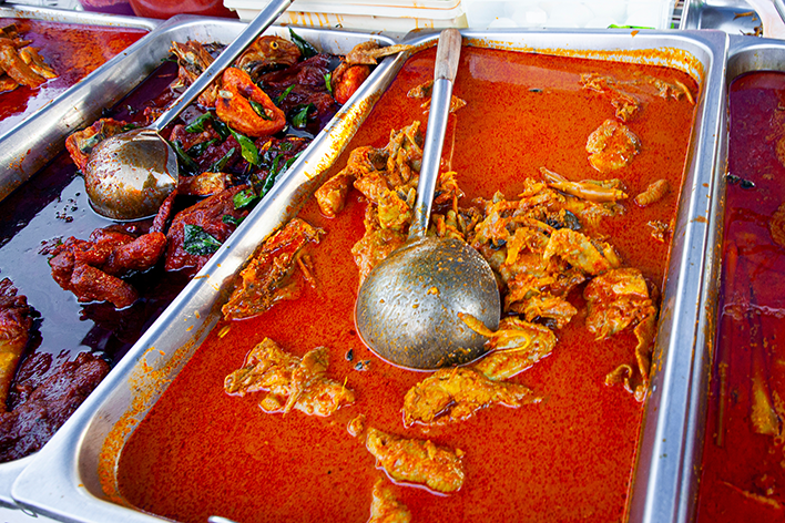 rundt på øya og serverer alt fra satay og nasi lemak til fersk tropisk frukt. De siste årene har også et økende